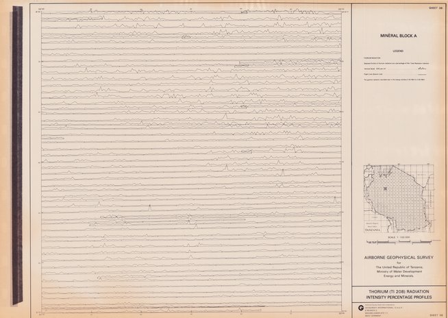 Title: Airborne Geophysical Survey for The United Republic of Tanzania, Ministry of Water, Energy and Minerals, Thorium (TI 208) radiation Intensity percentage profiles - Scale: 100000 - Sheet number/Numéro de feuille/Bladnummer: 98