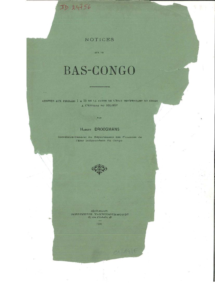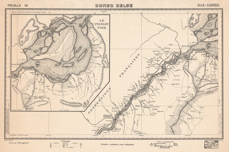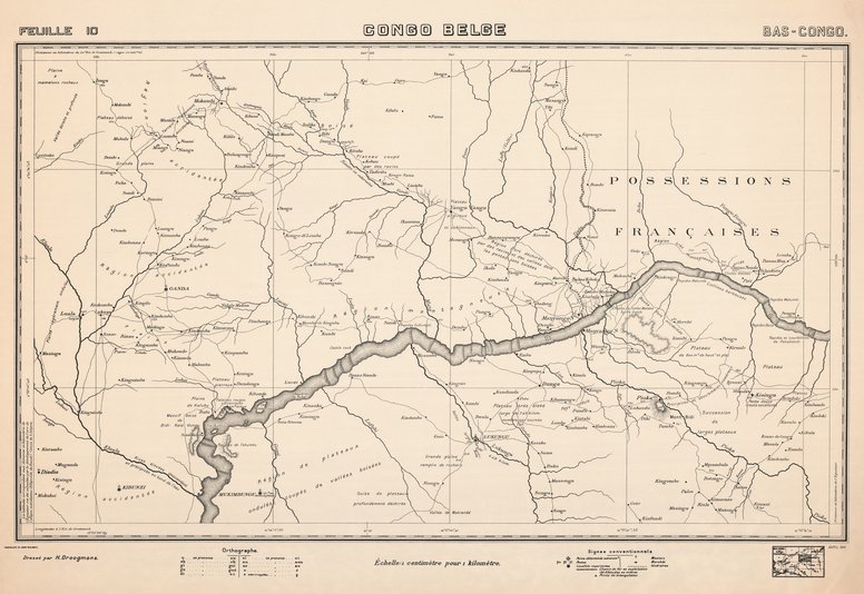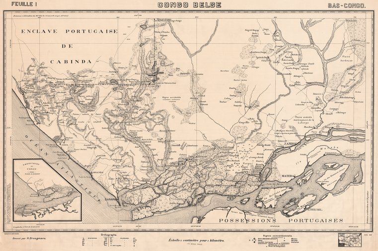 Title: Bas-Congo, Congo Belge - Scale: 100000 - Annexe aux feuilles 1 à 15 de la carte de l'Etat Indépendant du Congo à l'échelle du 100.000ème.