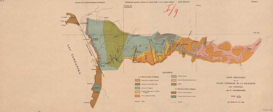Title: Annales de la Société Géologique de Belgique (Année 1913-1914) Publications spéciales relatives au Congo belge et aux régions voisines, Carte géologique de la vallée inférieure de la Malagarasi (Lac Tanganika) - Scale: 300000 - Planche I