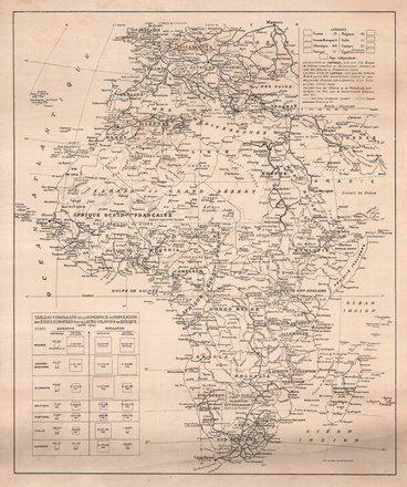 Title: Afrique, Tableau comparatif de la superficie et population des états européens et de leurs colonies en Afrique - Scale: 20000000