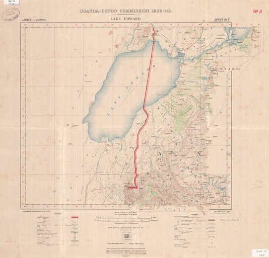 Title: Africa 1:250.000, Lake Edward - Scale: 250000 - Uganda-Congo Commission 1906-1908 - Sheet number/Numéro de feuille/Bladnummer: 92-F and part of 93-A