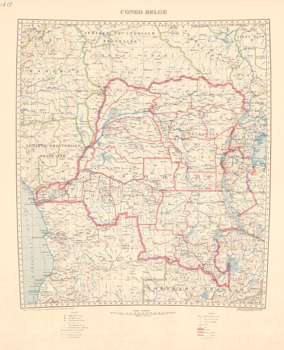 Title: Carte du Congo Belge - Scale: 8000000 - Annotations