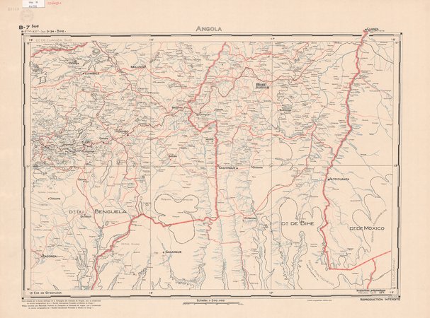 Title: Bihe - Scale: 500000 - Carte du tableau d'assemblage de la carte de l'Angola - Sheet number/Numéro de feuille/Bladnummer: B-7 Sud