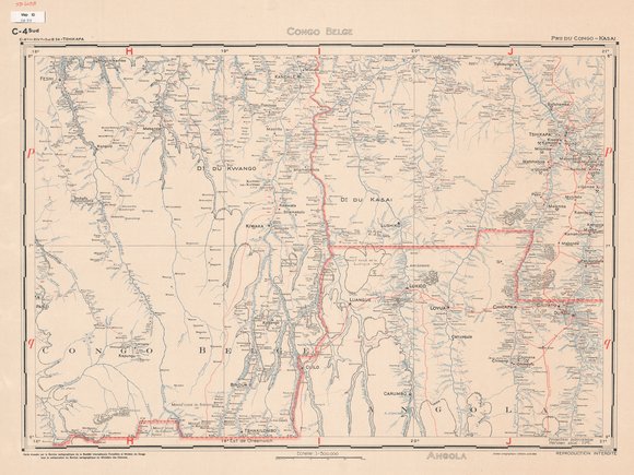 Title: Tshikapa - Scale: 500000 - Carte du tableau d'assemblage de la carte de Congo Belge Carte du tableau d'assemblage de la carte de l'Angola - Sheet number/Numéro de feuille/Bladnummer: C-4 Sud