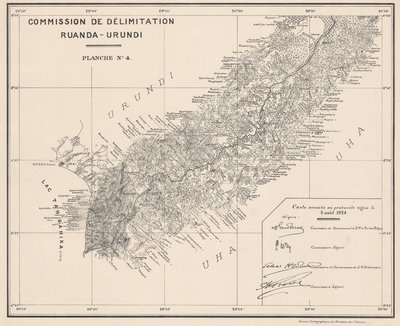 Title: Carte annexée au protocole signé le 5 août 1924, Commission de délimitation Ruanda-Urundi Planche n°4 - Scale: 200000 - Assemblage en 4 planches planche 4 - Sheet number/Numéro de feuille/Bladnummer: 4
