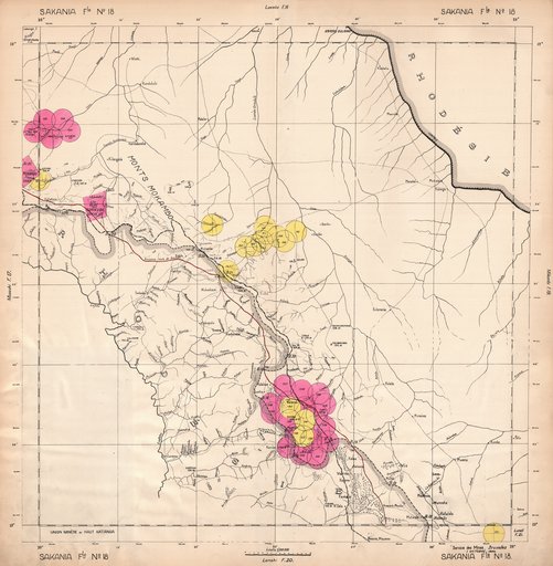 Title: Sakania Atlas des concessions minières - Scale: 200000 - Sheet number/Numéro de feuille/Bladnummer: 18