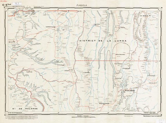 Title: Saurimo - Scale: 500000 - Carte du tableau d'assemblage de la carte de l'Angola ID19121 - Sheet number/Numéro de feuille/Bladnummer: C-5 Sud XVIII - Sud C34