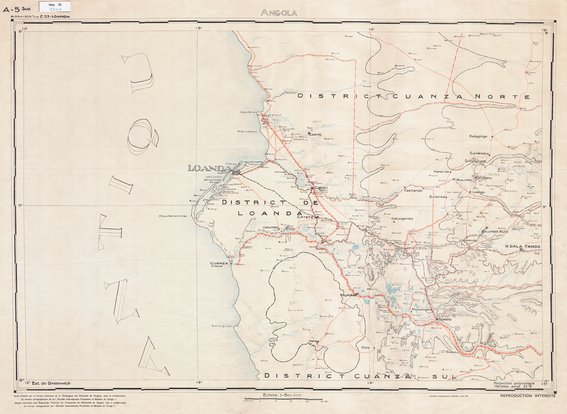 Title: Loanda - Scale: 500000 - Carte du tableau d'assemblage de la carte de l'Angola ID19121 - Sheet number/Numéro de feuille/Bladnummer: A-5 Sud XVII - SudC33