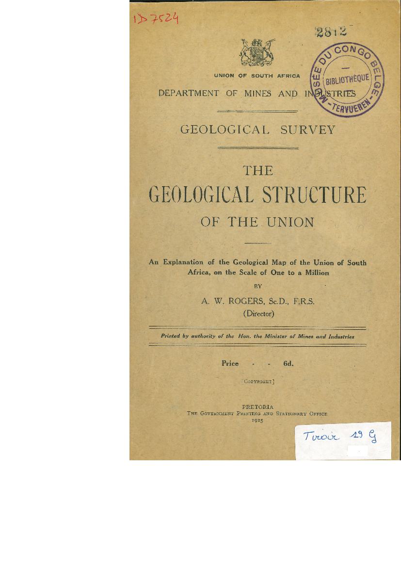 Title: An explanation of the Geological Map of the Union of South Africa, on the Scale of One to a Million, The geological structure of the Union - Scale: 1000000