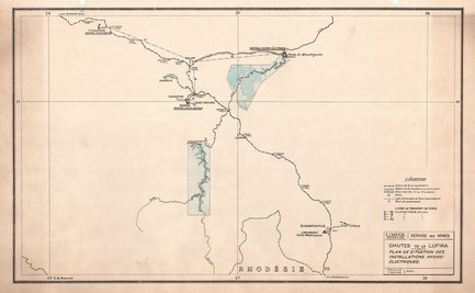 Title: Chutes de la Lufira Plan de situation des installations hydro-électriques - Scale: 500000