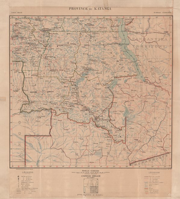 Title: Congo Belge en 4 feuilles, Province du Katanga - Scale: 2000000 - Sheet number/Numéro de feuille/Bladnummer: IV
