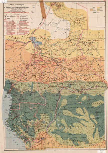 Title: Cartes économiques de l'Afrique Equatoriale française, Cultures alimentaires, fourragères, etc. - Scale: 4000000 - feuille n°1 - Sheet number/Numéro de feuille/Bladnummer: 1