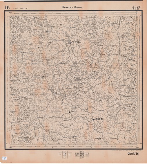 Title: Ruanda-Urundi, SA35 / 4RIV - Scale: 100000 - 01/04/16 - Sheet number/Numéro de feuille/Bladnummer: 16