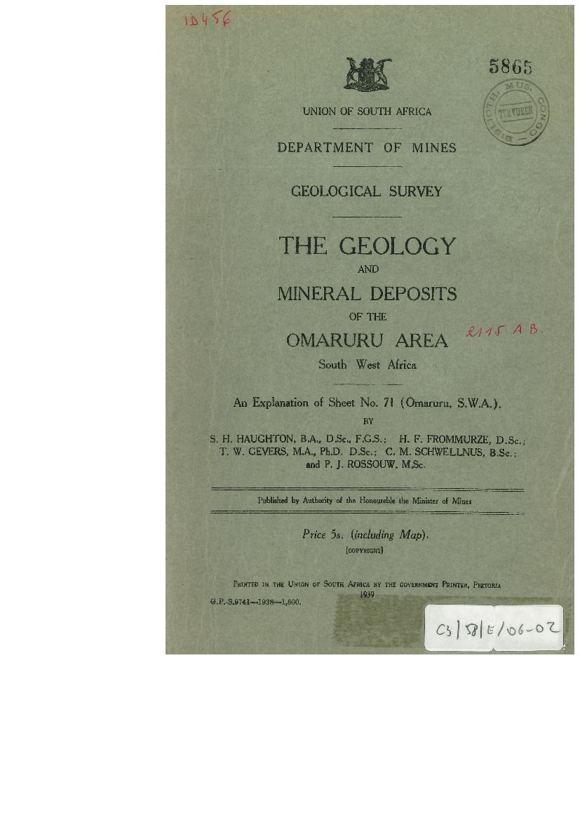 An explanation of Sheet N°71 (Omaruru S.W.A.) - The geology and mineral deposits of the Omaruru area