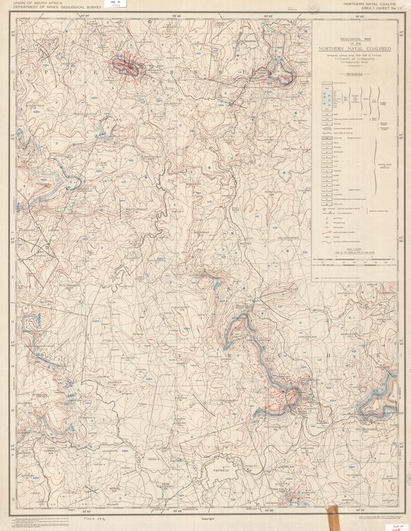 Title: Geological map of the Northern Natal Coalfield - Scale: 125000 - Coal Survey : Memoir n°1, Area 1 - Sheet number/Numéro de feuille/Bladnummer: 1