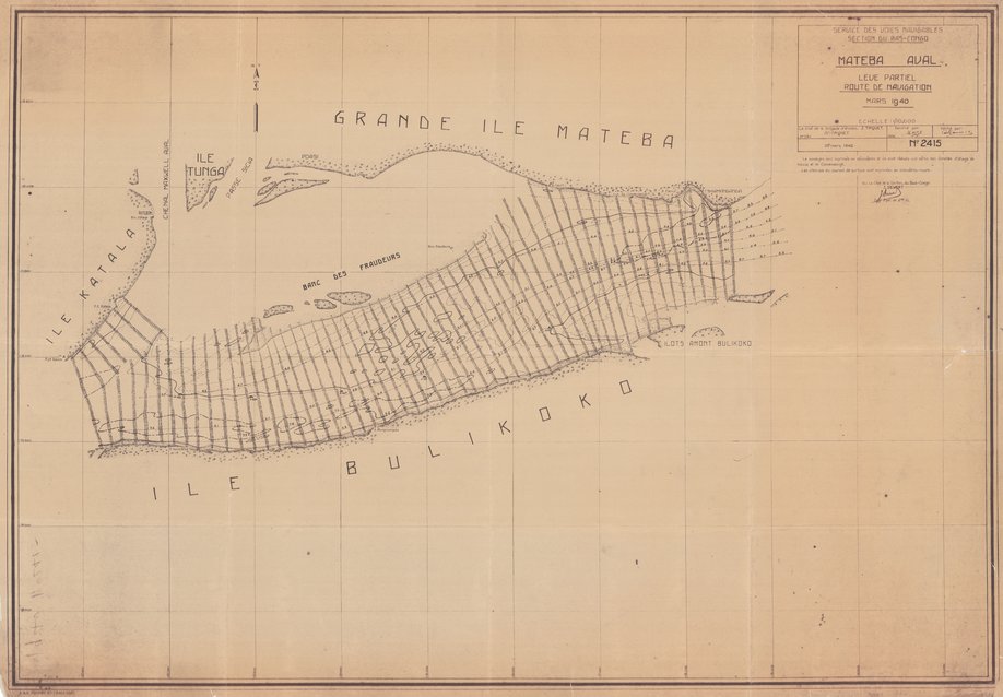 Title: Mateba Aval, Section du Bas-Congo Levé partiel Route de navigation - Scale: 10000 - sondages - Sheet number/Numéro de feuille/Bladnummer: 2415