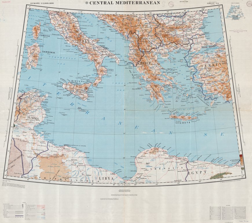 Title: Central Mediterranean - Scale: 2000000 - Carte d'assemblage Serie 6203 - Sheet number/Numéro de feuille/Bladnummer: C2