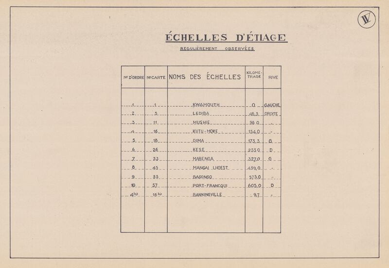 Title: Echelles d'étiage régulièrement observées, Rivière Kasai - Route balisée - Scale: 25000 - Sheet number/Numéro de feuille/Bladnummer: IV