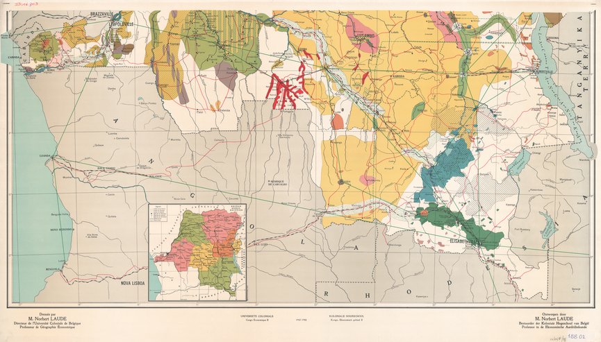 Title: Congo belge Belgisch-kongo, Principales productions minérales, végétales et animales. Voies de communication. Voornaamste voortbrengselen uit het delfstoffen-, planten- en dierenrijk. Verkeerswegen - Scale: 2000000 - Sheet number/Numéro de feuille/Bladnummer: Sud