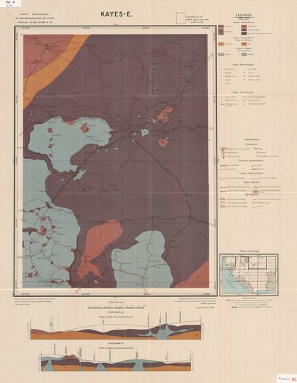 Title: Carte géologique de reconnaissance de l'A.O.F., Kayes-E. - Scale: 500000 - Sheet number/Numéro de feuille/Bladnummer: ND 29-NO-E.61