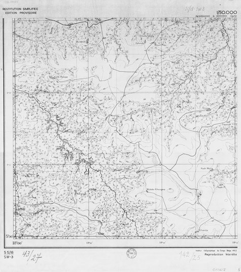 Title: Bulungu - Scale: 50000 - Restitution Simplifiée Reproduction Interdite - Sheet number/Numéro de feuille/Bladnummer: S5/18-SW3
