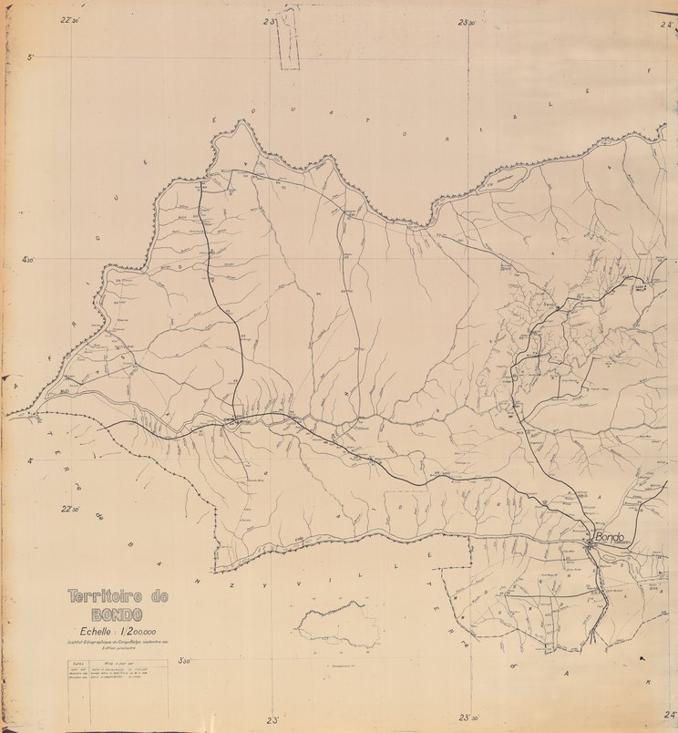 Title: Territoire de Bondo - Scale: 200000 - Assemblage de 2 feuilles - Sheet number/Numéro de feuille/Bladnummer: Ouest