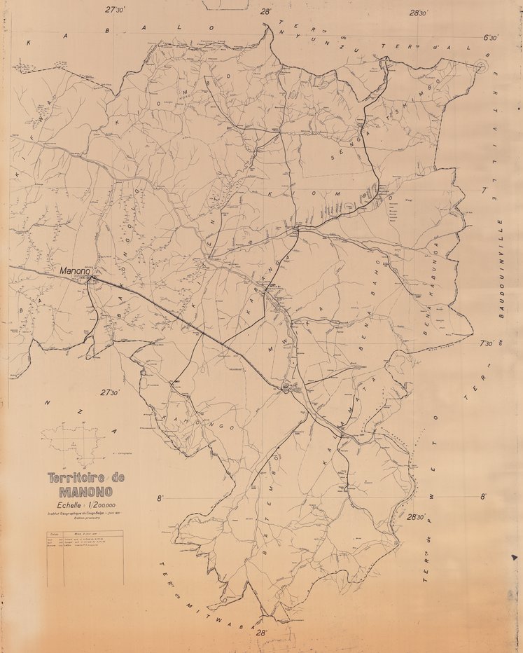 Title: Territoire de Manono - Scale: 200000 - Carte en 2 feuilles - Sheet number/Numéro de feuille/Bladnummer: Est