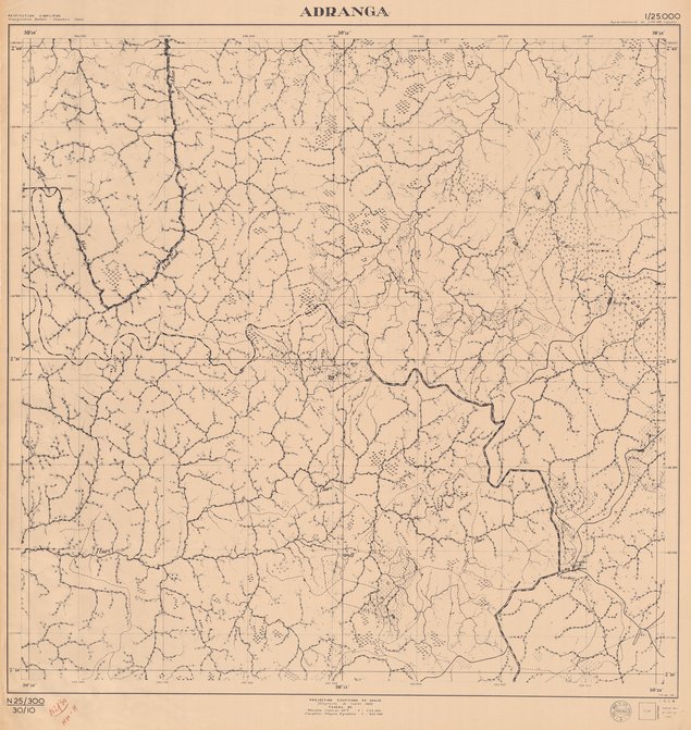 Title: Adranga - Scale: 25000 - Restitution simplifiée Triangulation radiale - Chambre claire - Sheet number/Numéro de feuille/Bladnummer: N2/30 NW-H