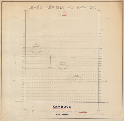 Title: Juin 1952 Juin 1953, Levés aériens au Katanga Kambove - Scale: 200000 - Disposition schématique des bandes au 1:20.000