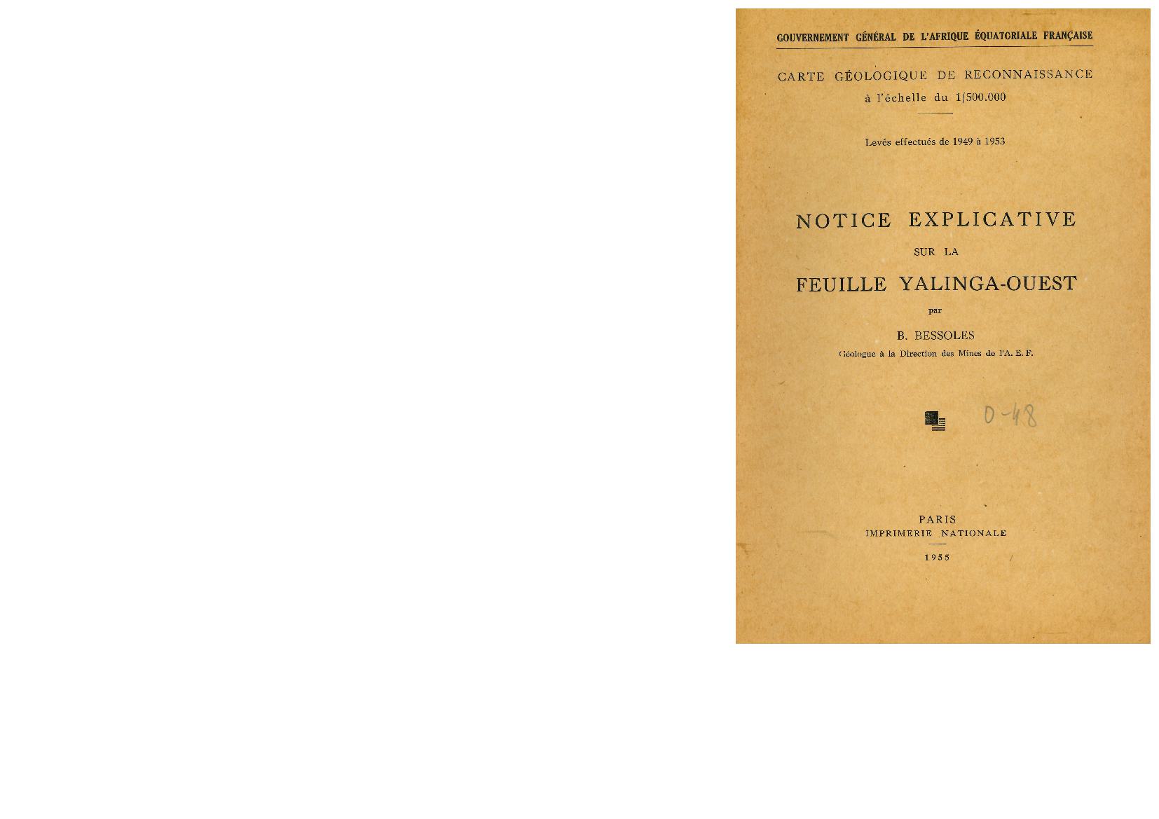 Title: Carte géologique de reconnaissance de l'A.E.F., Notice explicative sur la feuille Yalinga-Ouest - Scale: 500000 - Sheet number/Numéro de feuille/Bladnummer: NB.34 NE-O48