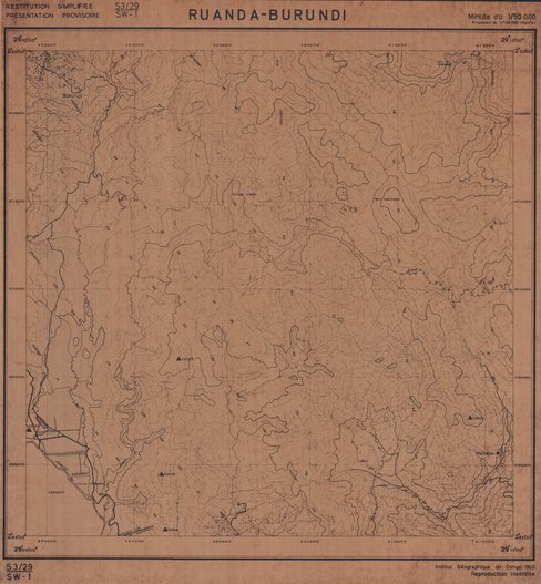 Title: Ruanda-Burundi - Scale: 50000 - Restitution Simplifiée Reproduction Interdite - Sheet number/Numéro de feuille/Bladnummer: S3/29-SW1