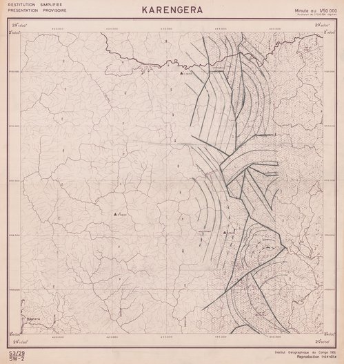Title: Karengera - Scale: 50000 - Minute Numéros photos aériennes - Sheet number/Numéro de feuille/Bladnummer: S3/29-SW2