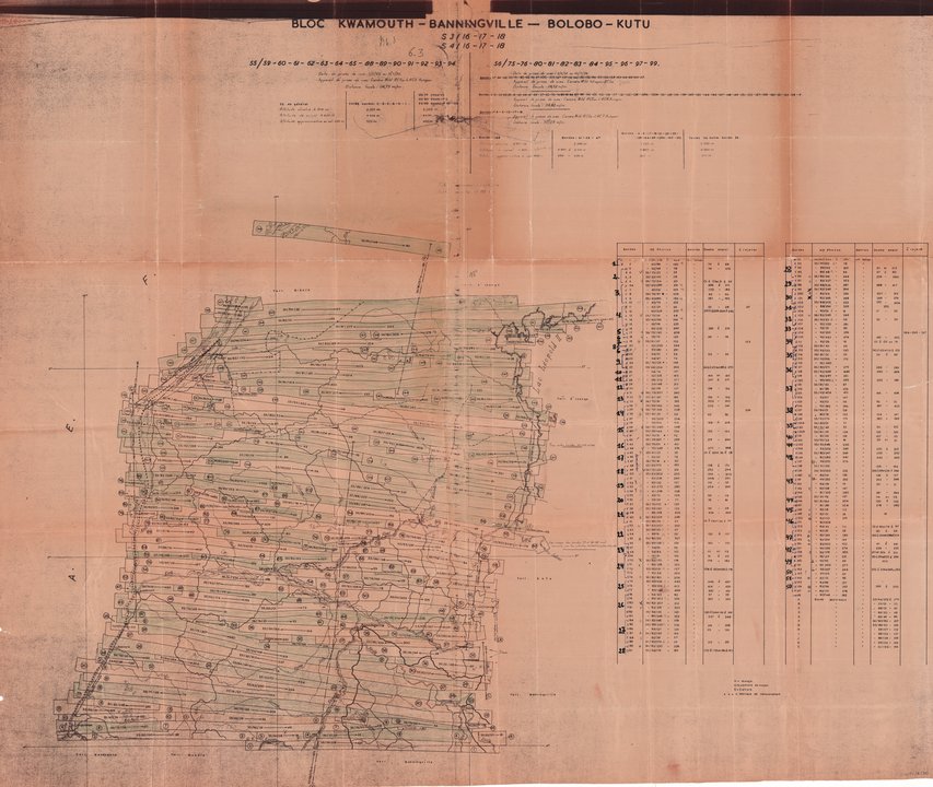 Title: 55/59-60-61-62-63-64-65-88-89-90-91-92-93-94 56/75-76-80-81-82-83-84-95-96-97-99, Plan de vol du bloc Kwamouth - Banningville - Bolobo - Kutu