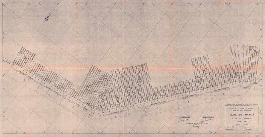 Title: Plan de sondages juin 1957, Port de Matadi - Scale: 1000 - Sondages Boma, le 17-6-57 - Sheet number/Numéro de feuille/Bladnummer: 2958