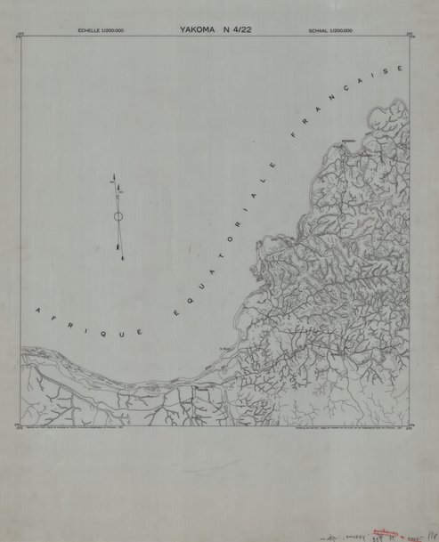 Title: Yakoma - Scale: 200000 - Réduction par l'I.G.M., d'après les mosaïques de l'I.G.C.B., d'une étude photogéologique de G. Thonnart. - Sheet number/Numéro de feuille/Bladnummer: N4/22