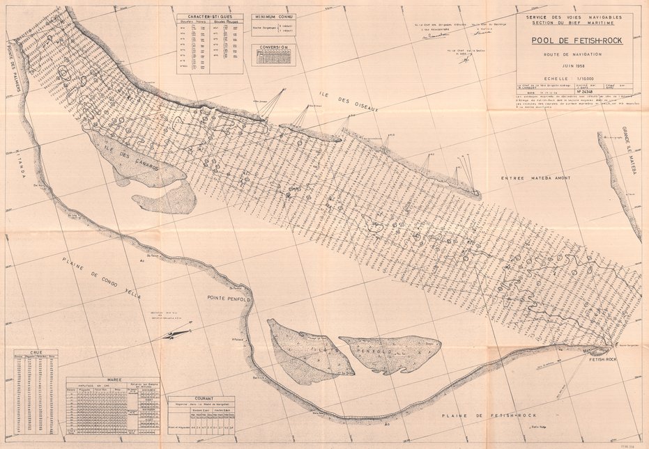 Title: Pool de Fetish-Rock, Route de navigation - Scale: 10000 - Sondages Boma, le 17-6-58 - Sheet number/Numéro de feuille/Bladnummer: 24348
