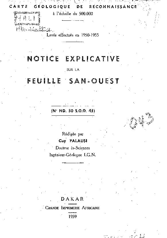 Title: Carte géologique de reconnaissance à l'échelle du 500.000, Notice explicative sur la feuille San-Ouest - Scale: 500000 - Sheet number/Numéro de feuille/Bladnummer: ND. 30 S.0.0. 43