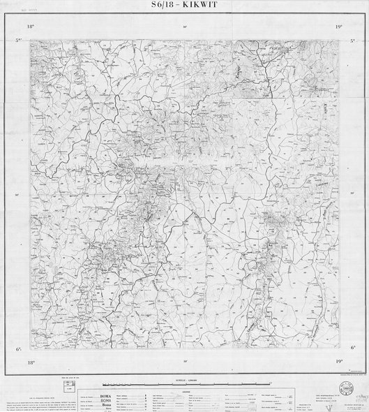Title: Kikwit - Scale: 200000 - Copie monochrome - Sheet number/Numéro de feuille/Bladnummer: S6/18