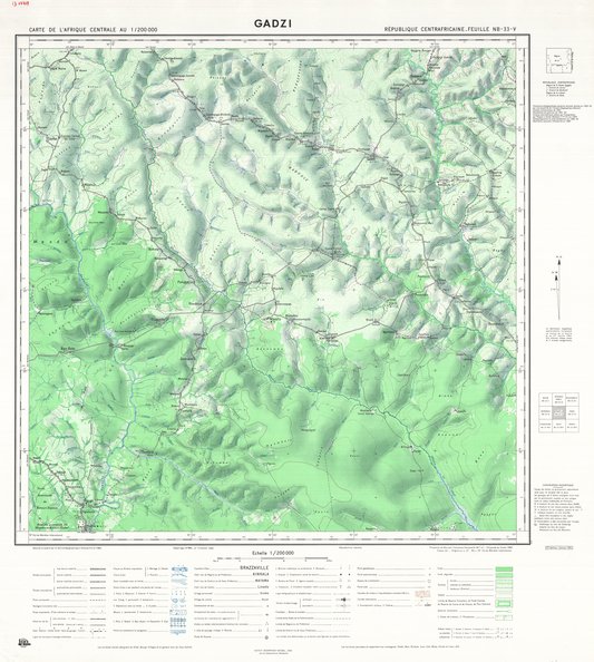 Title: Carte de l'Afrique Centrale, Gadzi - Scale: 200000 - Sheet number/Numéro de feuille/Bladnummer: NB-33-V