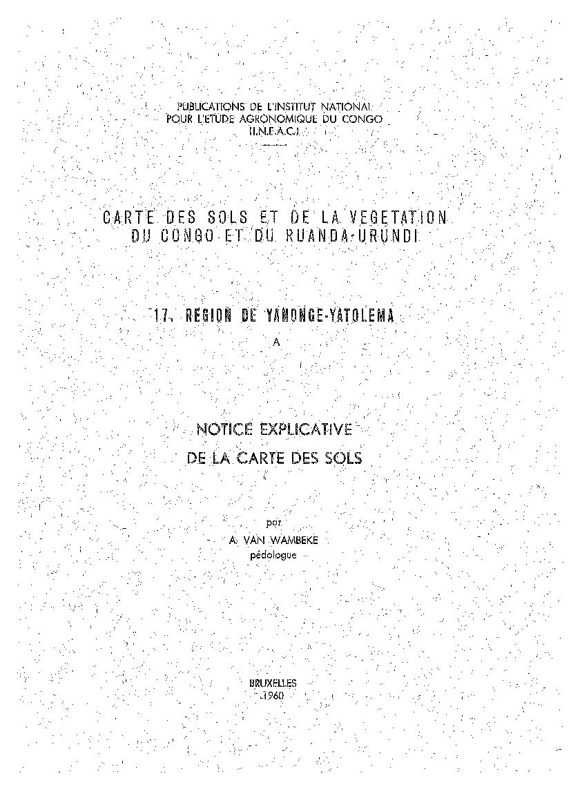Title: 17. Région de Yanonge-Yatolema Notice explicative de la carte des sols, Carte des sols et de la végétation du Congo Belge et du Ruanda-Urundi - Scale: 100000