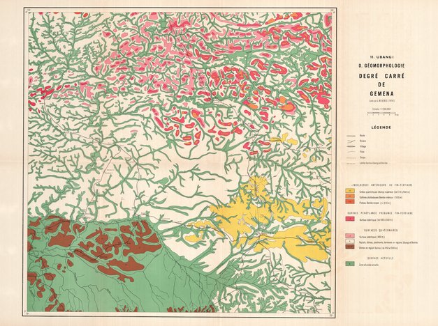 Title: 11. Ubangi D. Géomorphologie Degré carré de Gemena, Carte des sols et de la végétation du Congo Belge et du Ruanda-Urundi - Scale: 200000