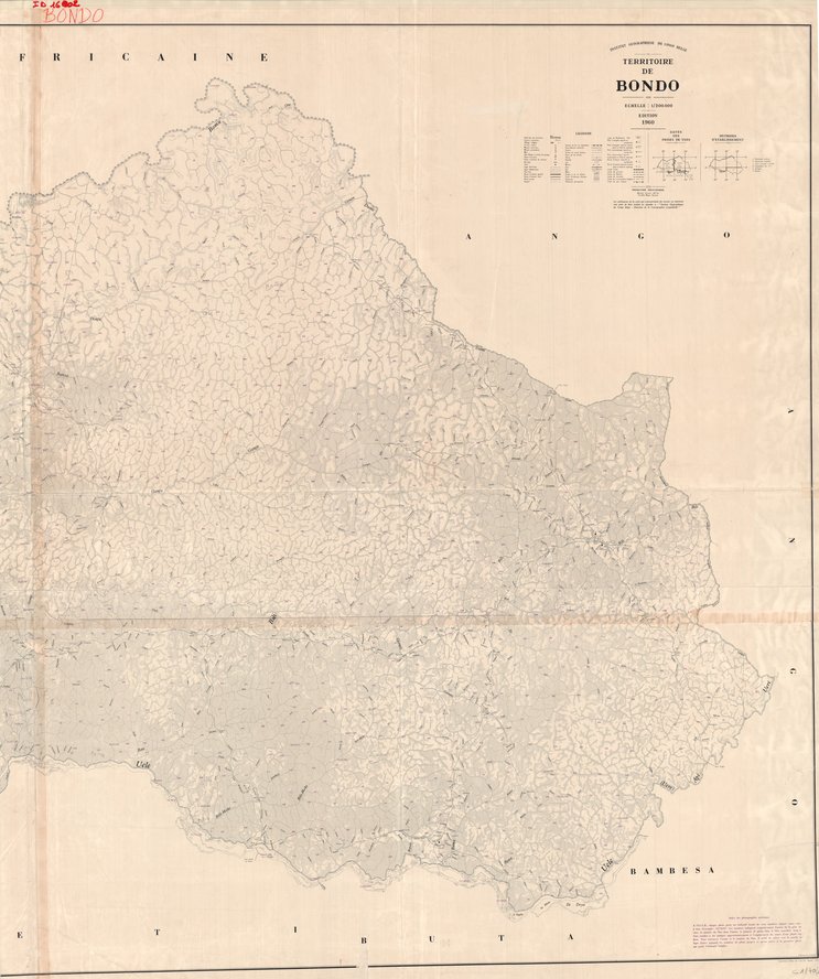 Title: Territoire de Bondo - Scale: 200000 - Carte scannée en 2 feuilles - Sheet number/Numéro de feuille/Bladnummer: Est