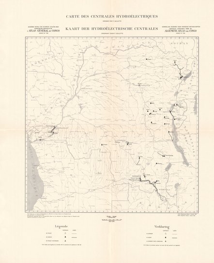Title: Atlas Général du Congo - Algemene Atlas van Congo, Carte des centrales hydroélectriques Kaart der hydroëlectrische centrales - Scale: 5000000 - Index 726