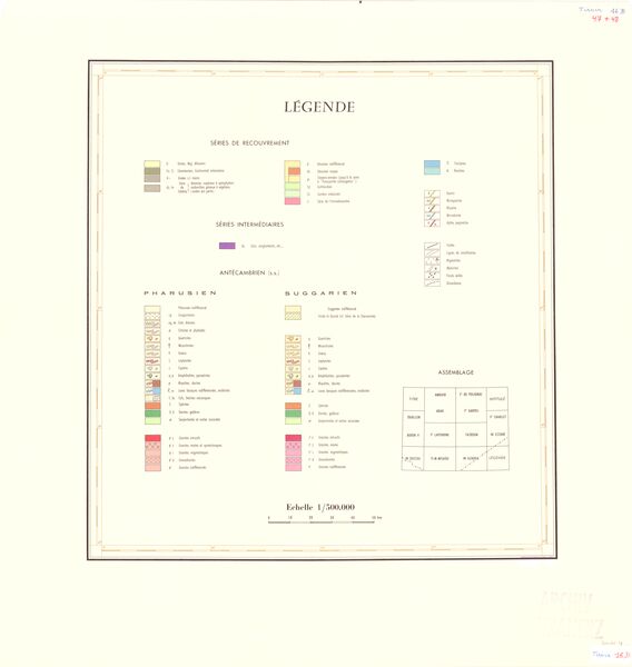 Title: Carte géologique du Sahara - Scale: 500000 - Tableau d'assemblage : 12 feuilles