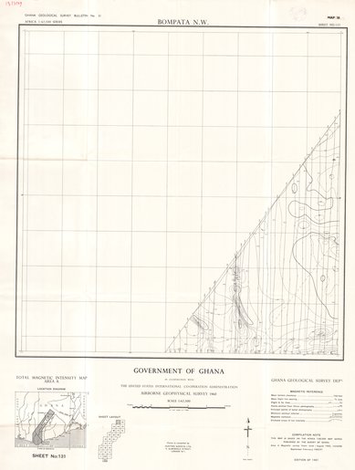 Title: Bompata NW Total magnetic intensity map - Area A, Ghana Geological Survey Bulletin N°31 Map 26 - Scale: 62500 - Preliminary series - Sheet number/Numéro de feuille/Bladnummer: 131