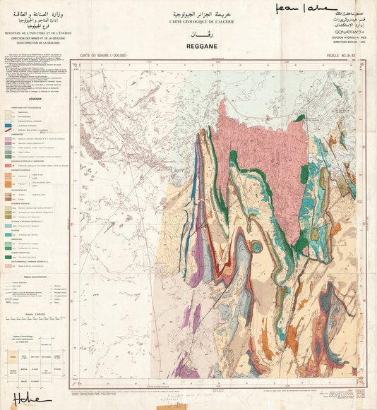 Title: Carte géologique de l'Algérie, Reggane - Scale: 200000 - Tableau d'assemblage Minute - Sheet number/Numéro de feuille/Bladnummer: NG-31-XIII