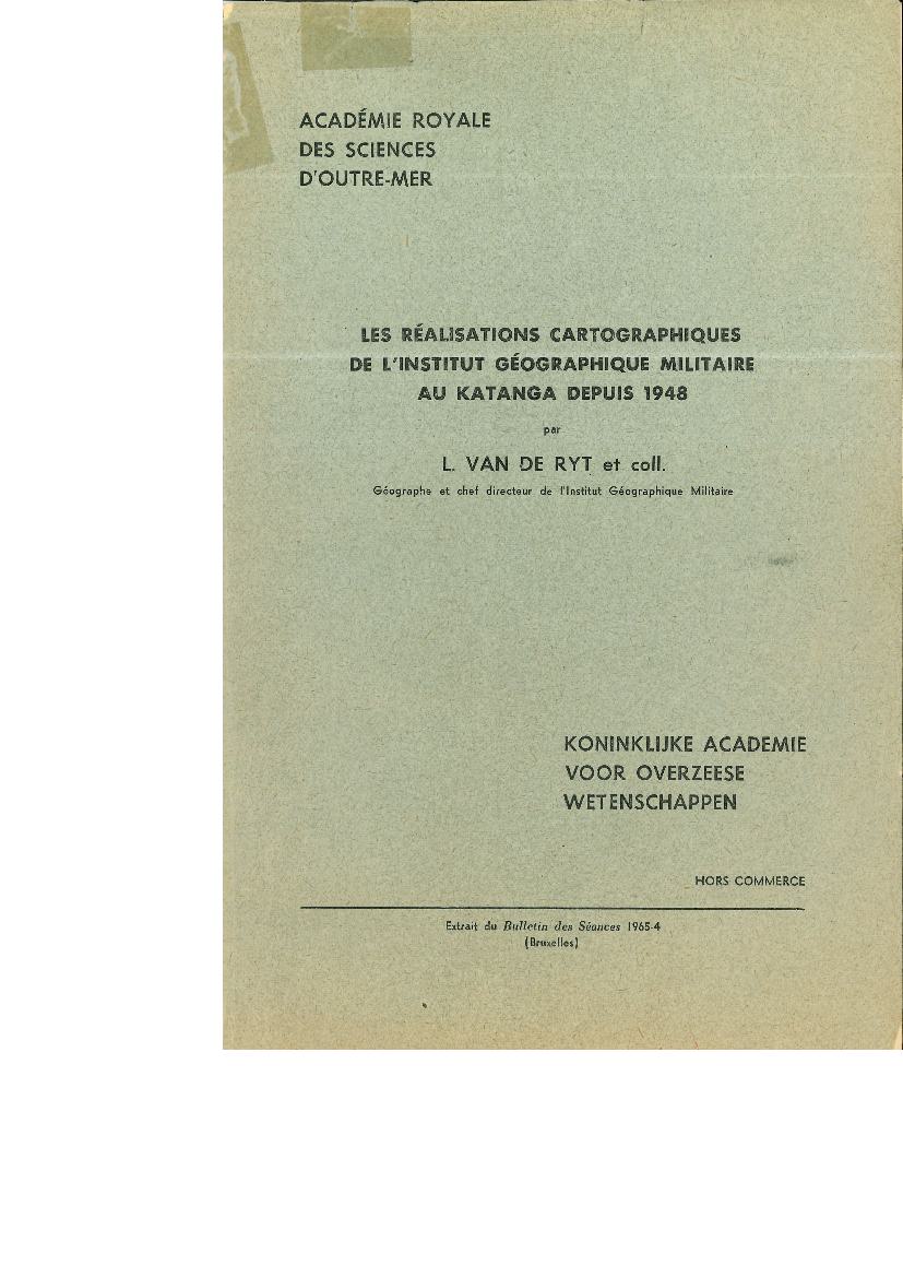 Title: Les réalisations cartographiques de l'Institut Géographique Militaire au Katanga depuis 1948 - Extrait du Bulletin des Séances 1965-4 (Bruxelles)