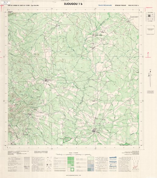 Title: Carte de l'Afrique de l'Ouest au 1/50.000 (Type Outre-Mer), Djougou - Scale: 50000 - tirage préliminaire - Sheet number/Numéro de feuille/Bladnummer: NC-31-VIII-1b
