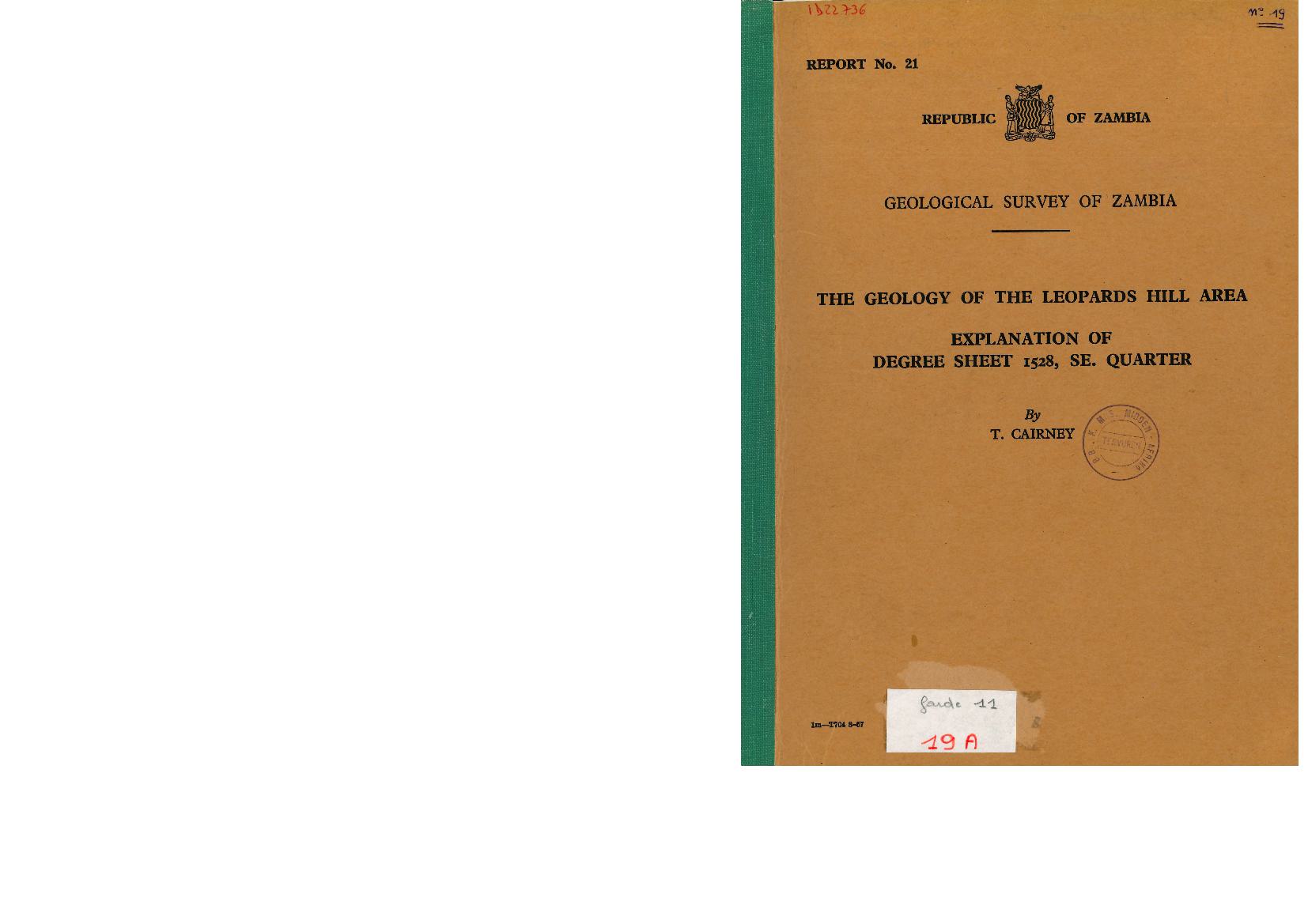 Title: Explanation of Degree Sheet 1528, SE. quarter Republic of Zambia, The geology of the Leopards Hill area - Scale: 100000 - Report N°21 - Sheet number/Numéro de feuille/Bladnummer: 1528 SE