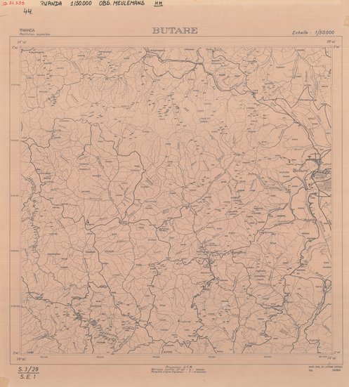 Title: Butare, Feuille 44 - Scale: 50000 - Points d'observation H. Meulemans - Sheet number/Numéro de feuille/Bladnummer: S3/29-SE1